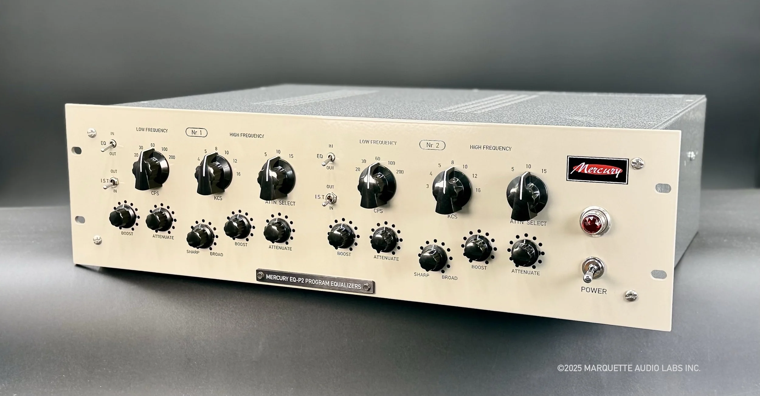 The Mercury EQ-P2 is two independent (dual mono) channels of our popular Mercury EQ-P1 (mono) Studio Program Equalizer in a 3U package. The Mercury EQ-P2 is based on the vintage Pultec EQ-P1a circuit. The Mercury EQ-P2 has a passive EQ circuit with a fully balanced (push-pull) gain make up amplifier. This new Mercury production utilizes only the highest quality passive components, while remaining true to the original and like all Mercury products has transformer balanced input and outputs. Besides a much more powerful and stable power supply and running DC on the heaters, rather than AC, the only other modernization is one of Mercury EQ-P2's most popular features, the Mercury IST Switch.