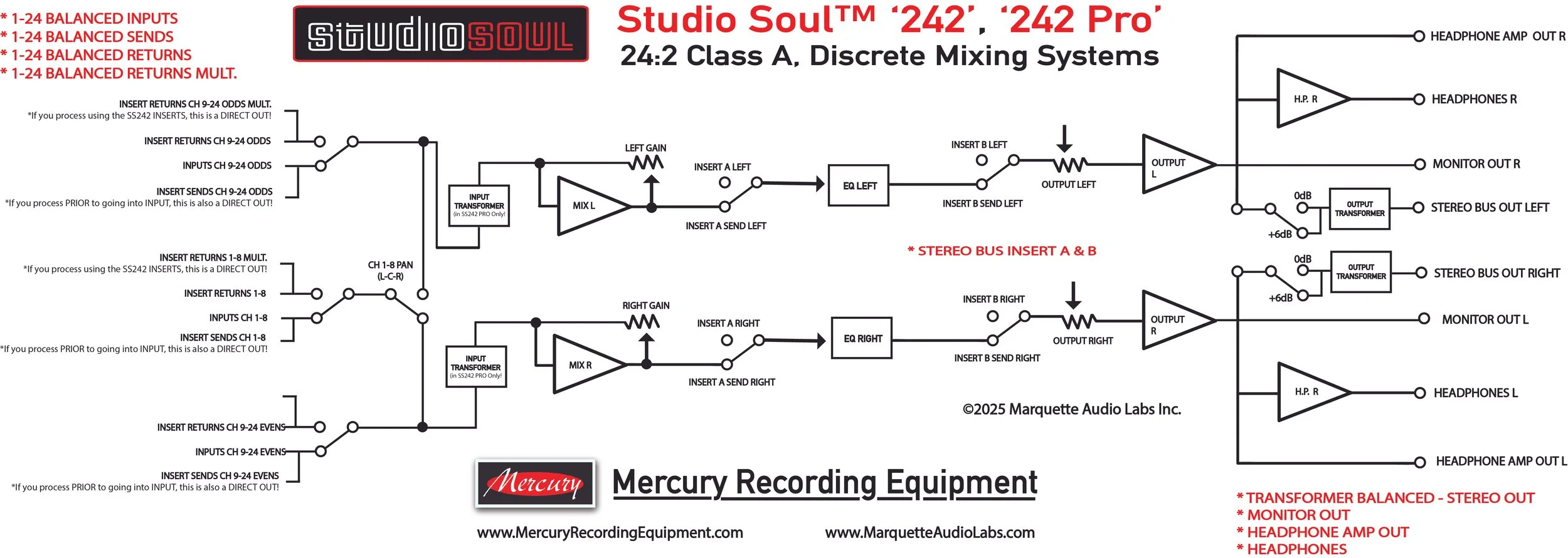 ‘SS242’ - Fully Balanced, Class A Discrete - No Input Transformers on 1-24 Inputs.