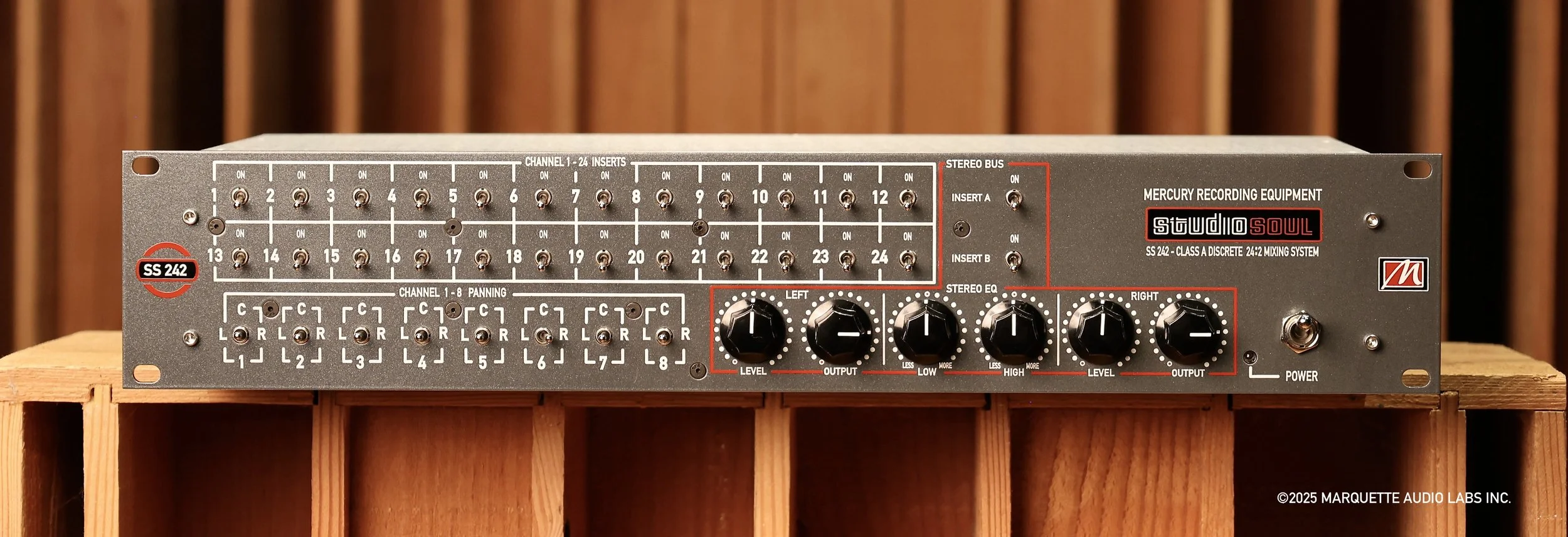 The Mercury Recording Equipment ‘Studio Soul 242’ & ‘Studio Soul 242 Pro’ is more than a summing mixer — it’s the missing tool in your studio to achieve the sound, isolation, and separation of mixing through a 24-channel Class A, Discrete Mixing Console… without the console.